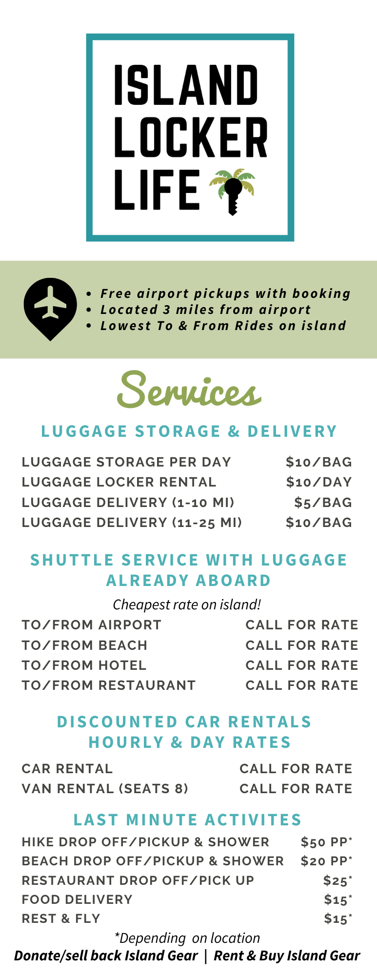 BOOK ISLAND LOCKER LIFE AND SECURE YOUR LUGGAGE WITH REAL IN-PERSON CUSTOMER SERVICE, NOT WITH AI, BOTS OR APPS. |